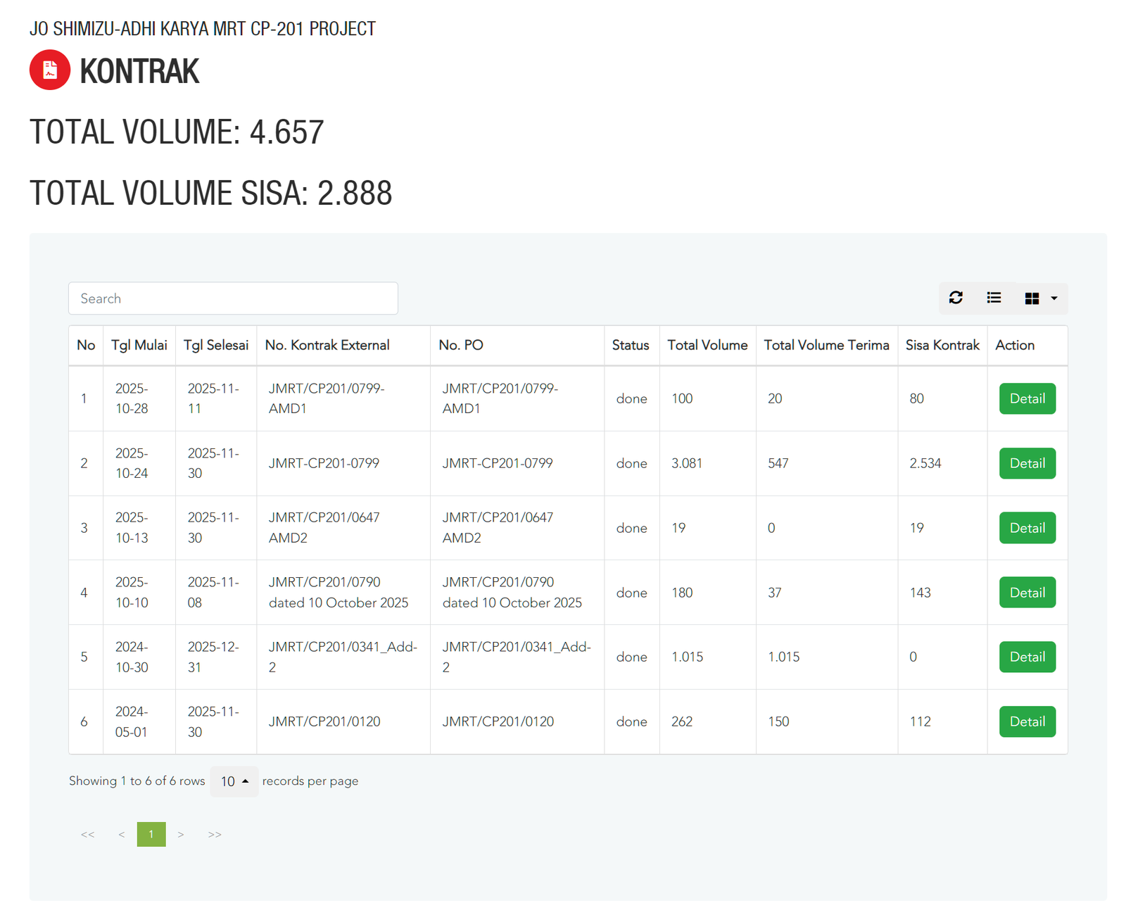 untuk mengetahui sisa volume pemesanan bisa melalui aplikasi Costumer Self Service di https://adhimixrmc.co.id/css/